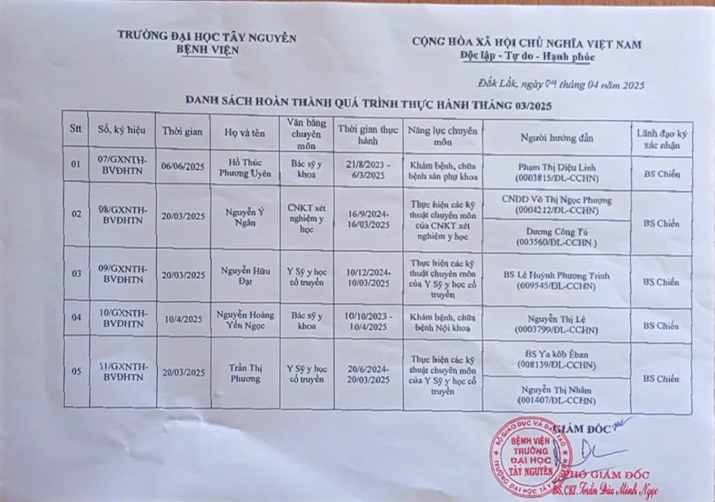 Danh sách hoàn thành quá trình thực hành tháng 03 năm 2025 tại Bệnh viện Trường Đại học Tây Nguyên danh sách thực hành hoàn thành thực hành Bệnh viện Trường Đại học Tây Nguyên Bệnh viện Đại học Tây Nguyên Bệnh viện Trường DHTN Bệnh viện Tây Nguyên Bệnh viện Đại học Bệnh viện bệnh viện dak lak bv dhtn benh vien dhtn đại học tây nguyên Bệnh viện BMT Bệnh viện Buôn Ma Thuột