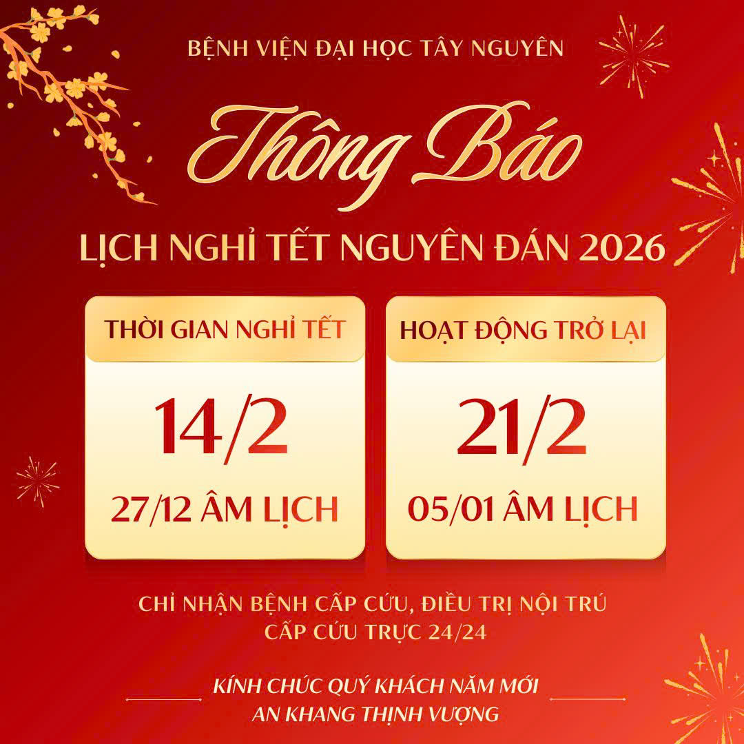 Bệnh viện Trường Đại học Tây Nguyên trân trọng thông báo lịch nghỉ Tết Âm lịch năm 2026: